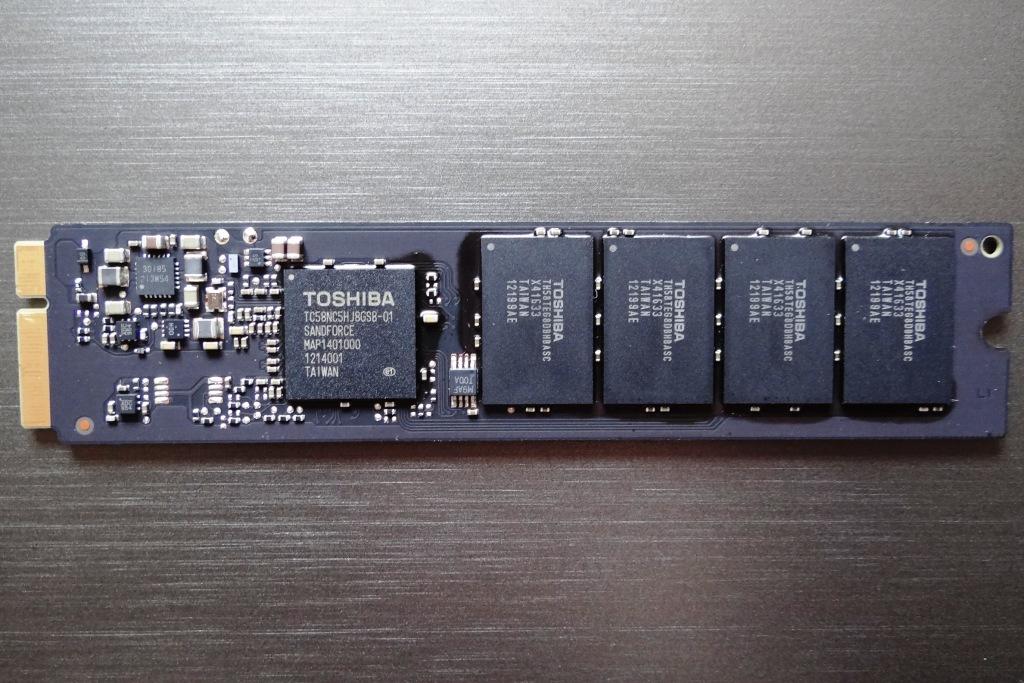 The Toshiba branded controller bears the markings of SandForce which would logically make it a SF-2281 6Gbps controller capable of performance in excess of 500MB/s read and write. This MBA is a 128GB version and the SSD contains four modules of 32GB Toshiba Toggle Mode 24nm NAND flash memory for a total RAW capacity of 128GB.