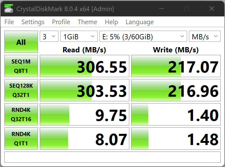 This reader also has a blue LED activity light on the top and this can be found on Amazon for $34.99. We tested this device with Sabrent’s own 64GB SDXC V90 card, one that we have been using in our trail cams for months and it immediately turned out this impressive performance: