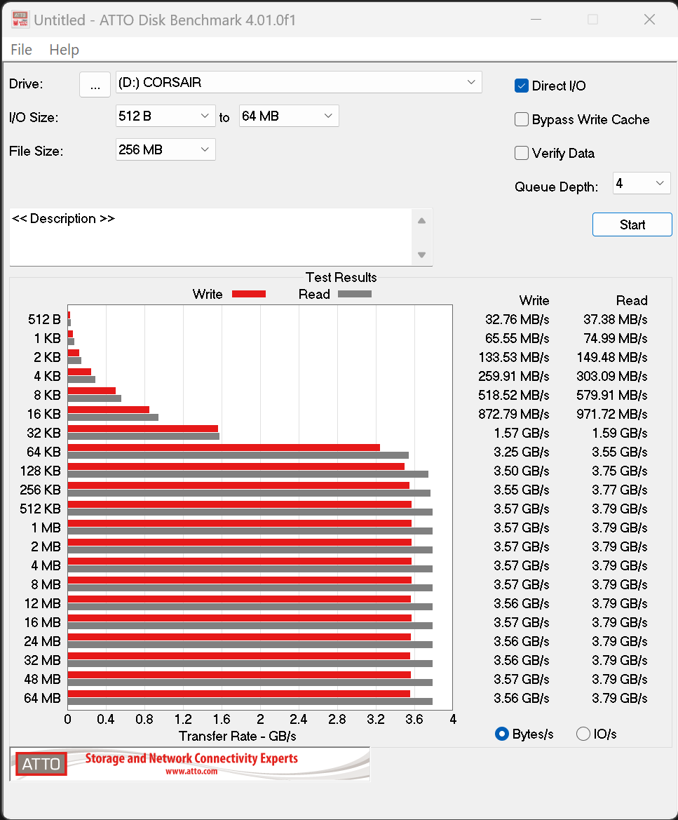 The Corsair EX400U is just about dead on with respect to its listed specs and it does something that we really like to see. It demonstrates its quality with steady performance progression as data size increases.