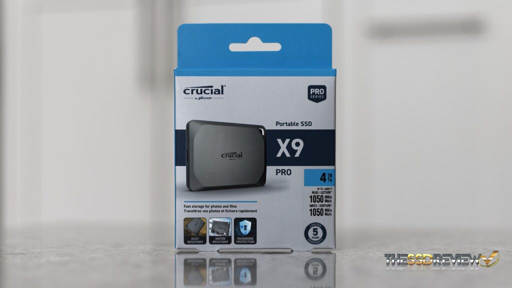 The Crucial X9 Pro is a very compact portable storage device available in 1TB, 2TB and 4TB capacities, and is one of the smallest storage devices we have seen to date. It is a USB 3.2 Gen 2 device that is capable of speeds up to 1050MB/s read and write, when using its attached 9″ Type-C to Type C-C cable and attached to a compatible Type-C port on ones system.