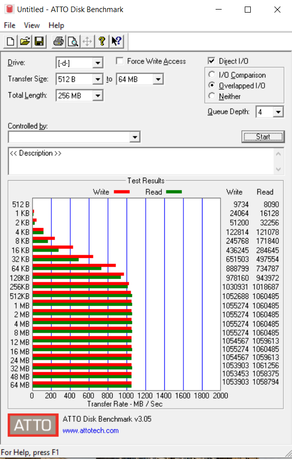 ATTO Disk Benchmark is perhaps one of the oldest benchmarks going and is definitely the main staple for manufacturer performance specifications. ATTO uses RAW or compressible data and, for our benchmarks, we use a set length of 256mb and test both the read and write performance of various transfer sizes ranging from 0.5 to 8192kb. Manufacturers prefer this method of testing as it deals with raw (compressible) data rather than random (includes incompressible data) which, although more realistic, results in lower performance results.
