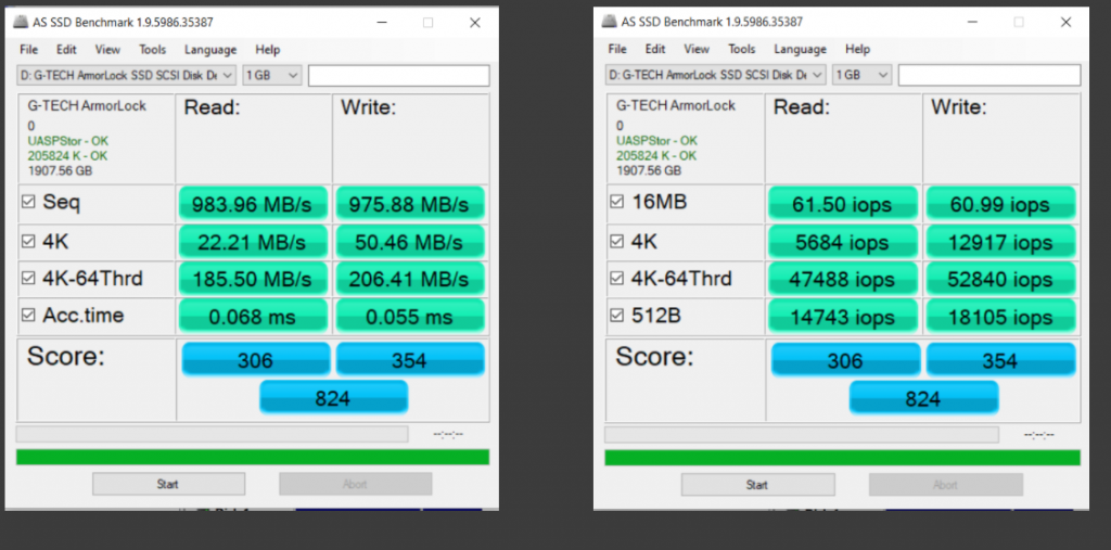 The SecureData SecureDrive is FIPS 140-2 Level 3 validated and has enhanced security measures to include epoxy filled casing which makes it impossible to physically break into the device and analyse the NAND components separately, as well as remote wipe, and a self-destruct feature. The G-Technology Armorlock Encrypts SSD transfers data at USB 3.2 speeds of 1GB/s read and write while the SecureDrive could only reach just under 400MB/s SATA 3 speeds in our original testing. We actually have an updated SecureDrive on its way and will retest its performance on arrival, amending this report if there are any changes. As well, the Armorlock is released with an MSRP of $599 while we see the SecureDrive has recently brought prices down significantly, the 2TB version now being $309.90.