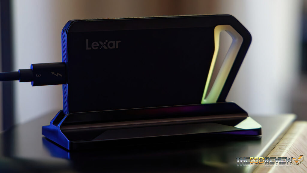 Todays Thunderbolt 3/4 provides data transfer speeds of just under 3GB/s (40Gbps), whereas USB 3.2 will provide 1GB/s (10Gbps)and bump to 2GB/s (20Gbps) if it is USB 3.2 2×2. Three external SSDs have arrived within the past week, all USB 3.2 just like that on our Test Bench for this report, the Lexar SL660 Blaze 1TB 20Gbps Gaming Portable SSD.