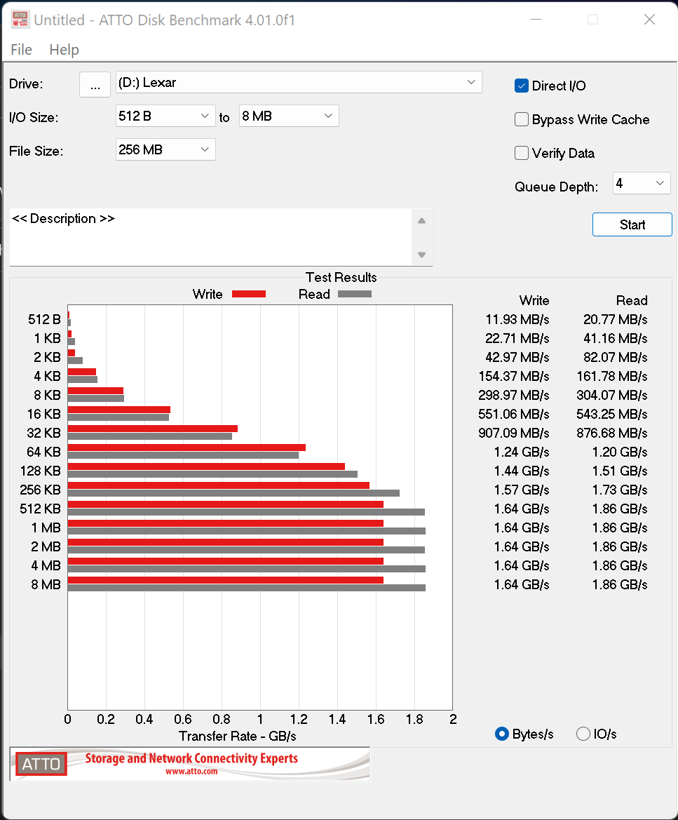 ATTO Disk Benchmark is perhaps one of the oldest benchmarks going and is definitely the main staple for manufacturer performance specifications. ATTO uses RAW or compressible data and, for our benchmarks, we use a set length of 256mb and test both the read and write performance of various transfer sizes ranging from 0.5 to 8192kb. Manufacturers prefer this method of testing as it deals with raw (compressible) data rather than random (includes incompressible data) which, although more realistic, results in lower performance results.