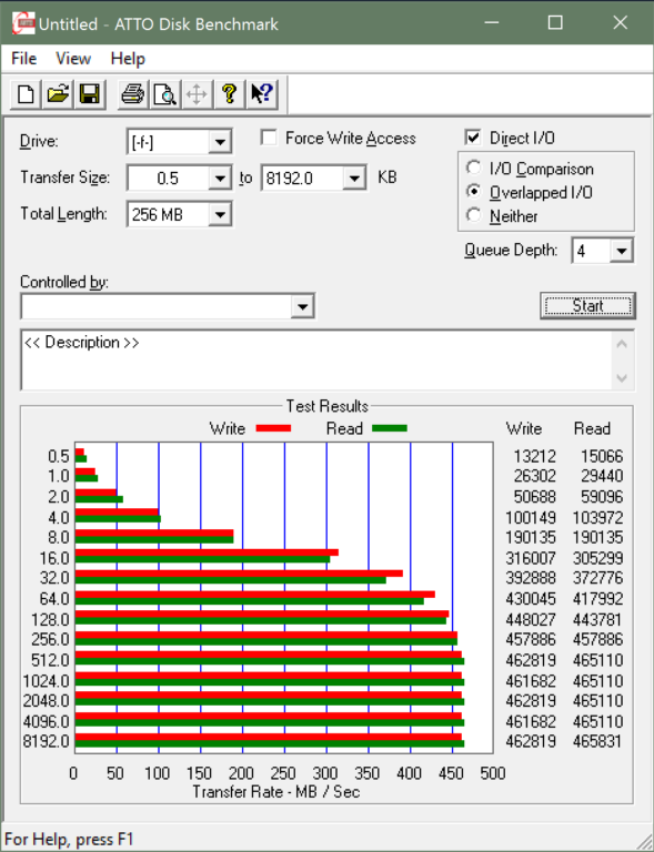 ATTO Disk Benchmark is perhaps one of the oldest benchmarks going and is definitely the main staple for manufacturer performance specifications. ATTO uses RAW or compressible data and, for our benchmarks, we use a set length of 256mb and test both the read and write performance of various transfer sizes ranging from 0.5 to 8192kb. Manufacturers prefer this method of testing as it deals with raw (compressible) data rather than random (includes incompressible data) which, although more realistic, results in lower performance results.