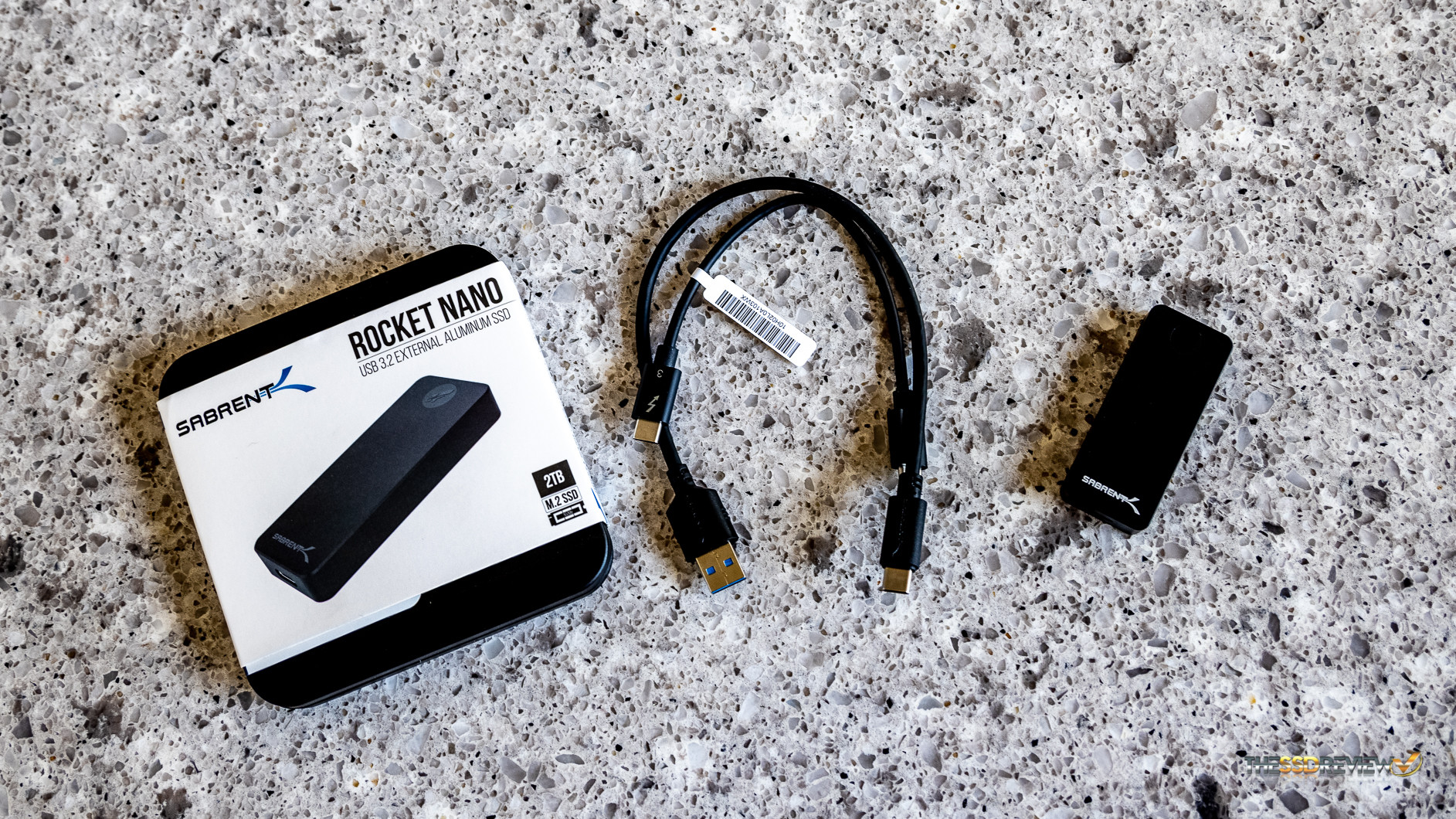 It’s packaging consists of the all-to-familiar exterior aluminum shell style casing, the Rocket Nano SSD itself and two cables, a USB Type-C to Type-C capable of data transfer up to 1GB/s read and write, as well as a Type-C to Type-A cable that will reach typical USB 3.1 speeds in the area of 540MB/s.