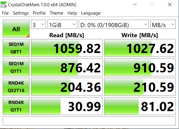 As impressive as the results are thus far, this AS SSD result is particularly encouraging as data transfer speeds are very close to specifications.