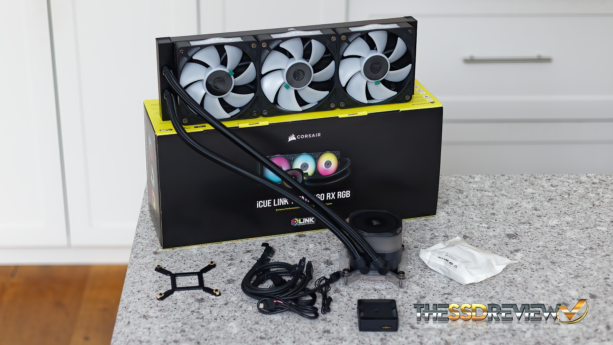 The iCUE Link Titan 360 RX RGB is a 360mm radiator with the RX120 RGB fans attached. This unit comes with the iCUE System hub just in case you need one, along with short and long cables for connecting the fans in a daisy chain.