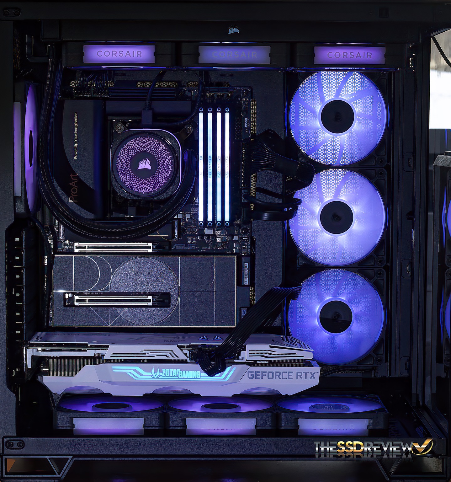 There are just a ton of things I love about this Test Bench…and one small concern which always seems to be the case. To start, the Corsair 6500x is the best case I have had yet for builds and completing SSD reviews. It keeps me from my final resolve of an open air Test bench which I have never really liked. It’s panorama glass view combined with the room to build and tuck away cables is great.