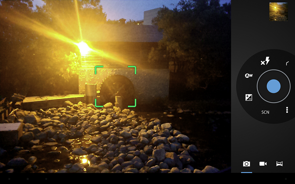 Testing the camera both indoors and outdoors in multiple lighting conditions was a breeze. The layout is quite simple, with a good selection of features. Would this replace even a point and shoot camera? Heck no…but the best camera to have is the one with you. If you are in a pinch the Infinity can achieve some very nice shots in proper lighting, although it’s awkward to take photos as the tablet is quite large. The default Android camera software has a very simple layout. Switching between the rear and front camera is a simple one-button touch. However, the settings menu leaves a lot to be desired: