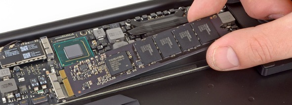In examining our system initially, we believed the SSD inside would be a Toshiba branded SandForce SSD as this had been reported by our friends at Other World Computing and, subsequently, Anandtech. As well, Ifixit.com did a complete teardown of the new MacBook Air and displayed the ‘LSI SandForce Driven’SSD as shown here: