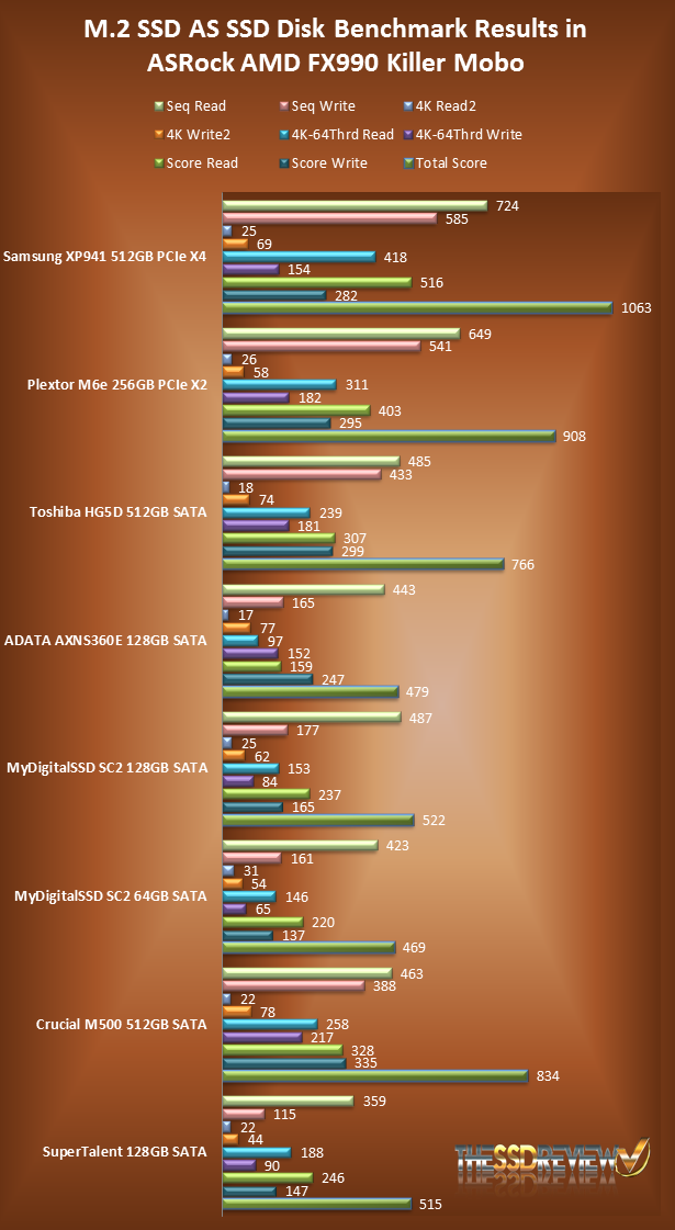 The implementation used in this first ASUS release is poor and will only support a single lane, not a four lane design such as the XP941….and then also, not as a boot device. The 990FX Killer, on the other hand, will support the XP941 and as a bootable drive, whereas initially it would not. We worked with ASRock to achieve such.