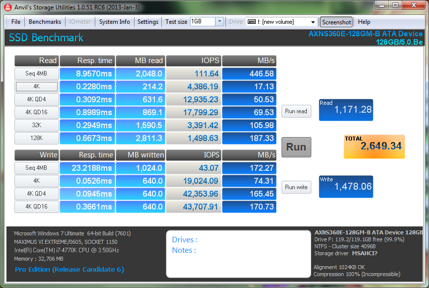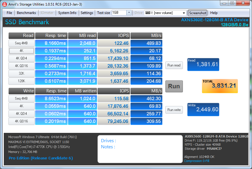 You may not see this for long (and its definitely not common) but you get a freebee simply for reading! Over the last little while, we have been assisting with beta testing new benchmark software called Anvil Storage Utilities which is an absolutely amazing SSD benchmarking utility. Not only does it have a preset SSD benchmark, but also, it has included such things as endurance testing and threaded I/O read, write and mixed tests, all of which are very simple to understand and utilize in our benchmark testing.