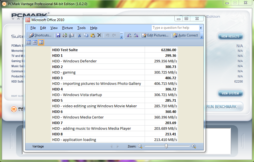 The SSD Review uses benchmark software called PCMark Vantage x64 HDD Suite to create testing scenarios that might be used in the typical user experience. There are eight tests in all and the tests performed record the speed of data movement in MB/s to which they are then given a numerical score after all of the tests are complete. The simulations are as follows:
