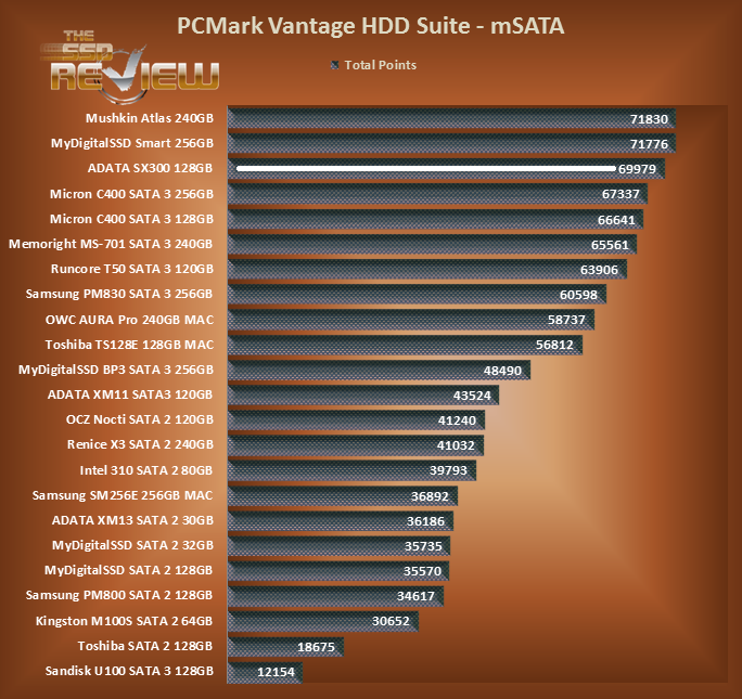 ADATA SX300 128GB MSATA SSD PCMARK VANTAGE RESULTS