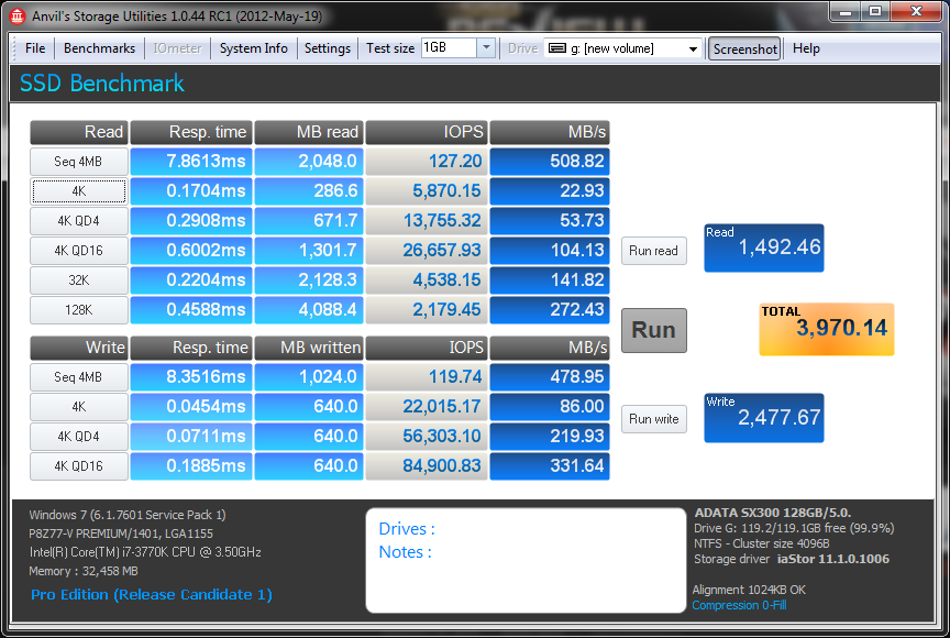 You may not see this for long (and its definitely not common) but you get a freebee simply for reading! Over the last little while, we have been assisting with beta testing new benchmark software called Anvil Storage Utilities which is an absolutely amazing SSD benchmarking utility. Not only does it have a preset SSD benchmark, but also, it has included such things as endurance testing and threaded I/O read, write and mixed tests, all of which are very simple to understand and utilize in our benchmark testing.