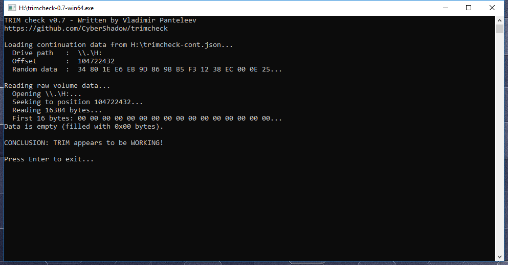 As can be seen in the screenshot above, TRIMcheck’s result is positive. TRIM is indeed working.