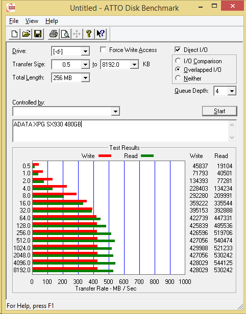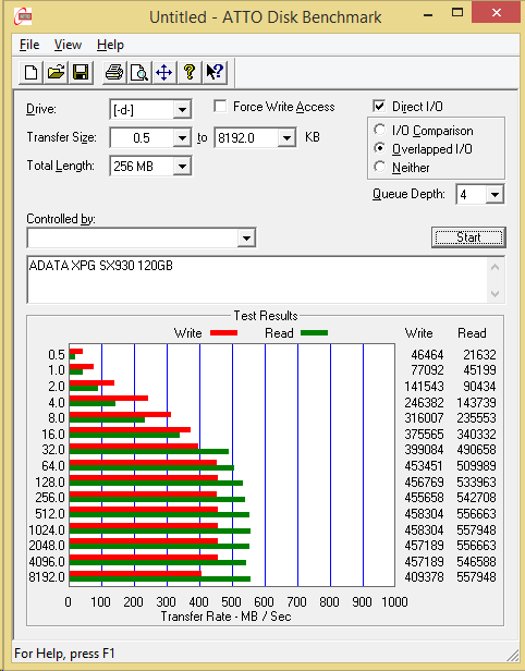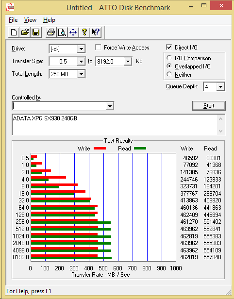 ATTO Disk Benchmark is perhaps one of the oldest benchmarks going and is definitely the main staple for manufacturer performance specifications. ATTO uses RAW or compressible data and, for our benchmarks, we use a set length of 256mb and test both the read and write performance of various transfer sizes ranging from 0.5 to 8192kb. Manufacturers prefer this method of testing as it deals with raw (compressible) data rather than random (includes incompressible data) which, although more realistic, results in lower performance results.