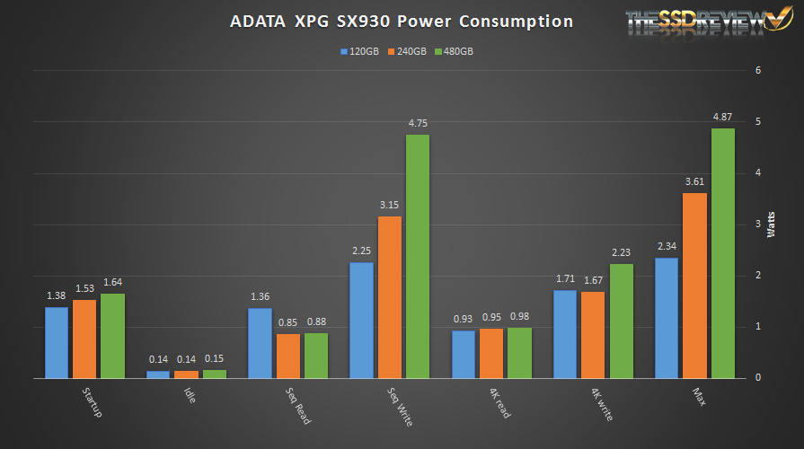 For our final test we will be taking a look at the ADATA XPG SX930’s power consumption.