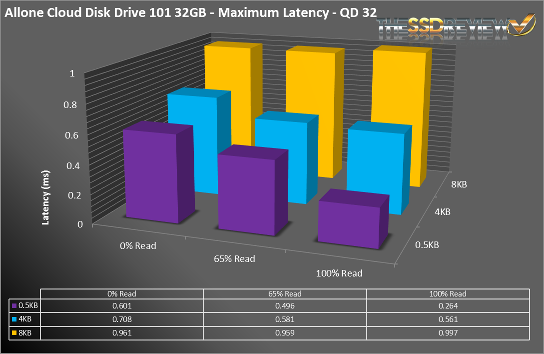 Maximum latency was also excellent. Typically, we see maximums in the 5-20ms range. For all of our tests, we never topped 1ms, which is very impressive.