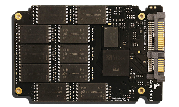 We also get our first look at the NovaChips Bugatti SATA 3 10 channel controller and Micron DRAM cache on the front of the PCB.