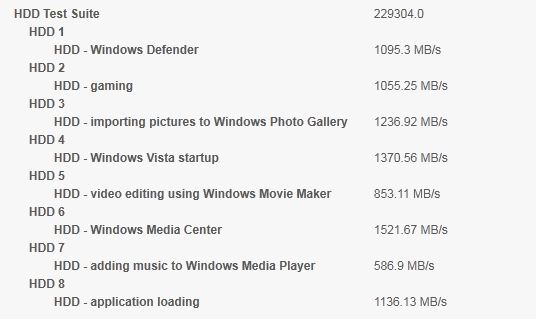 There are eight tests in all and the tests performed record the speed of data movement in MB/s to which they are then given a numerical score after all of the tests are complete. The simulations are as follows: