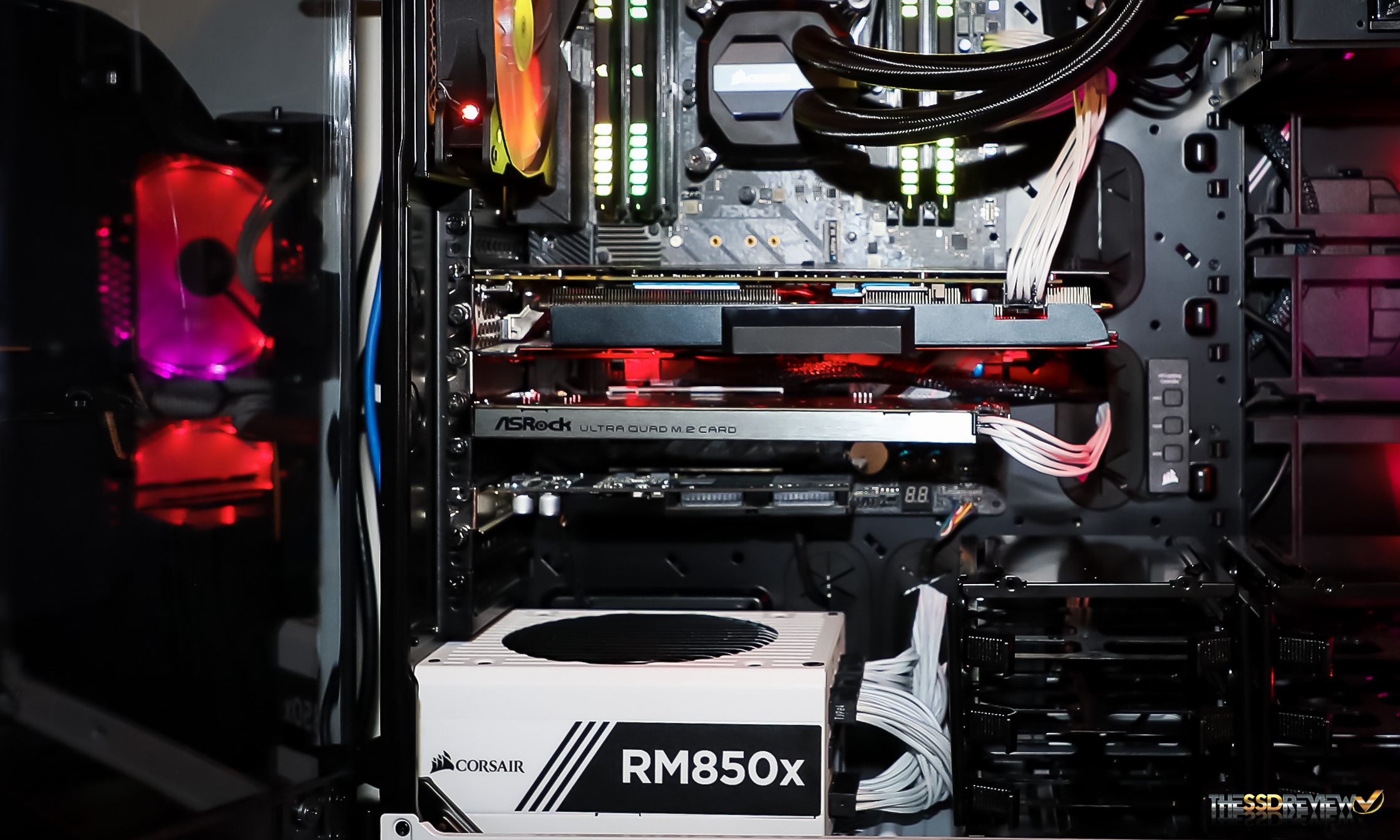 We don’t know quite when the Quad Ultra will be released, however, we might expect news some time this quarter as it is on their site, and we have learned the Ultra Quad Card might go for somewhere around $79. We should add that this IS NOT a solution for all scenarios as this card is only compatible with higher end motherboards that support PCIe bifurcation, where the PCIe 3.0 X16 interface can be split to accommodate each of the 4 SSDs in their own 4 lane sector (X4X4X4X4 vice X16). In our test case, the ASRock Fatal1ty X299 motherboard worked flawlessly and any ASRock X299/X399 ASRock motherboard should work. This is a significant difference from the HighPoint SSD7101 which contained a PLX PEX 8747 48-lane, 5-port, PCIe Gen 3 host switch which controlled all movement to and from the device.