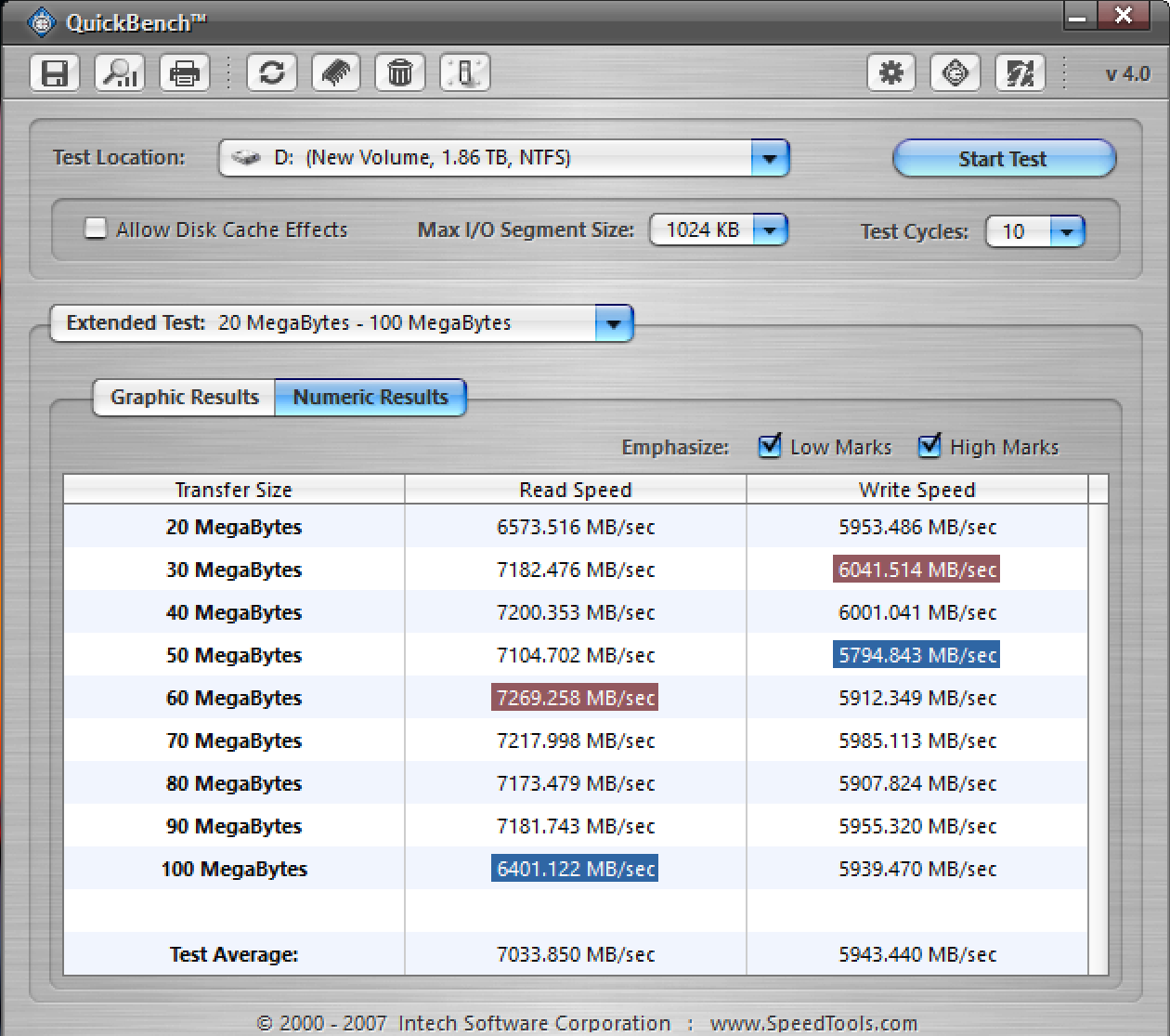 7GB/s read and 6GB/s write aren’t right up there but, through a compilation of all software, a better overall picture is gained.