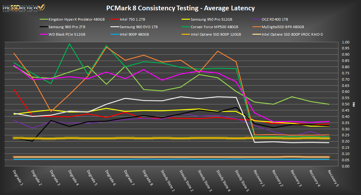 In reading the results, the Degrade and Steady State phases represent heavy workload testing while the recovery phase represents typical consumer light workload testing.