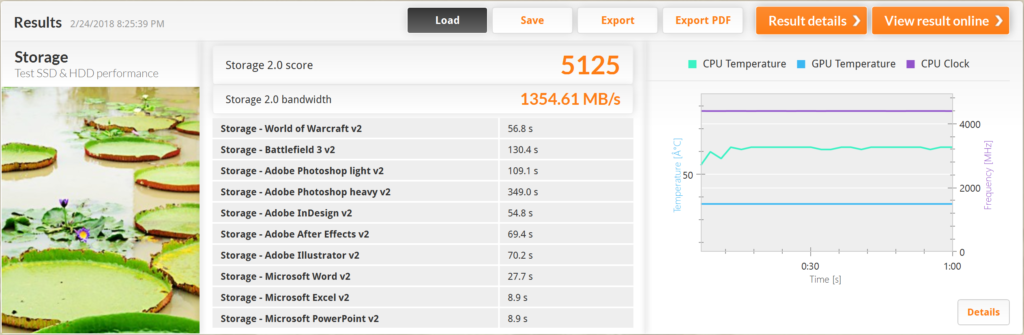 The SSD Review uses PCMark 8’s Storage test suite to create testing scenarios that might be used in the typical user experience. With 10 traces recorded from Adobe Creative Suite, Microsoft Office and a selection of popular games, it covers some of the most popular light to heavy workloads. Unlike synthetic storage tests, the PCMark 8 Storage benchmark highlights real-world performance differences between storage devices. After an initial break-in cycle and three rounds of the testing, we are given a file score and bandwidth amount. The higher the score/bandwidth, the better the drive performs.