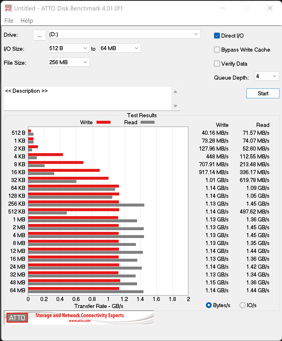 ATTO Disk Benchmark is perhaps one of the oldest benchmarks going and is definitely the main staple for manufacturer performance specifications. ATTO uses RAW or compressible data and, for our benchmarks, we use a set length of 256mb and test both the read and write performance of various transfer sizes ranging from 0.5 to 8192kb. Manufacturers prefer this method of testing as it deals with raw (compressible) data rather than random (includes incompressible data) which, although more realistic, results in lower performance results.