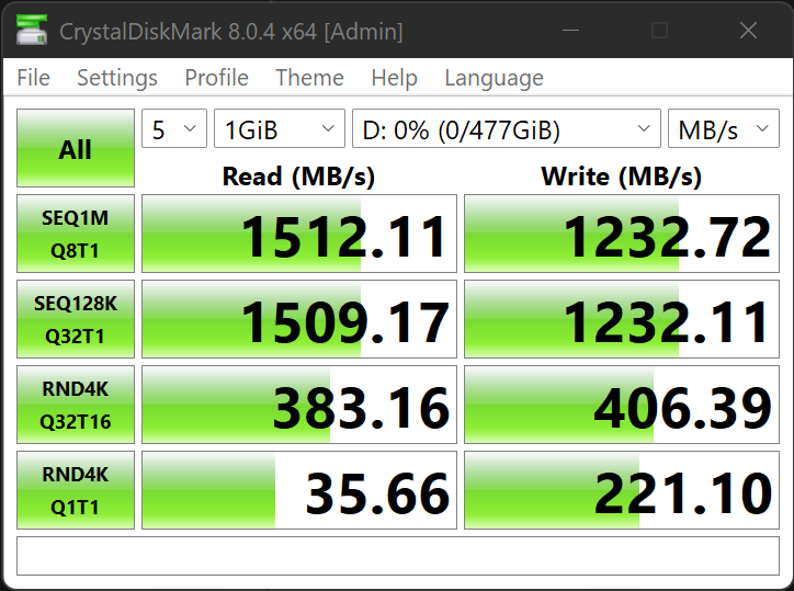 The AJA Video Systems Disk Test is relatively new to our testing and tests the transfer speed of video files with different resolutions and Codec.