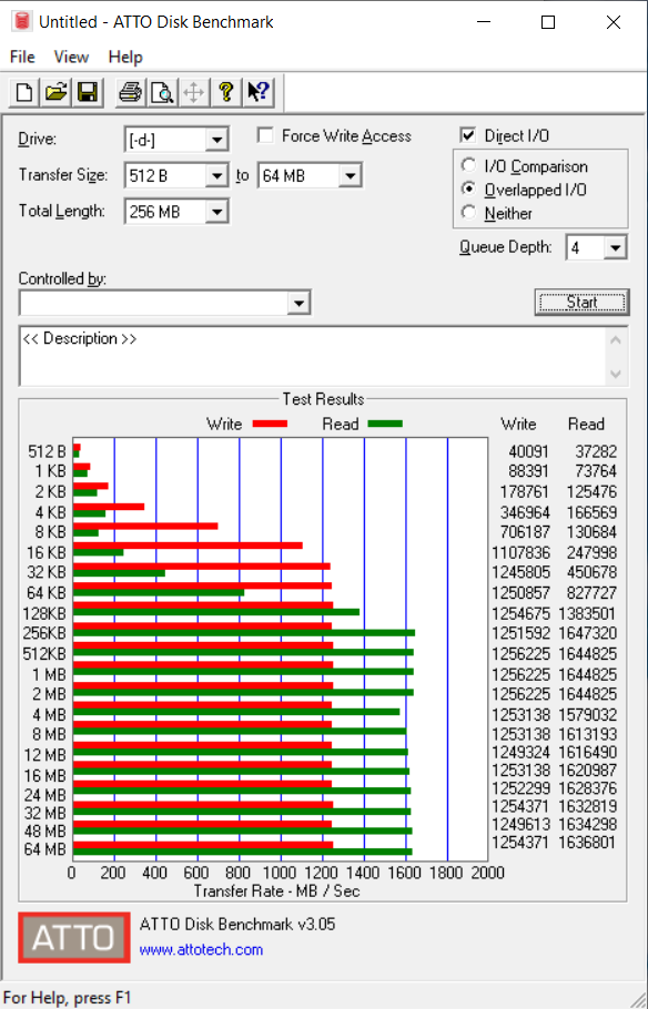 ATTO Disk Benchmark is perhaps one of the oldest benchmarks going and is definitely the main staple for manufacturer performance specifications. ATTO uses RAW or compressible data and, for our benchmarks, we use a set length of 256mb and test both the read and write performance of various transfer sizes ranging from 512b to 65mb. Manufacturers prefer this method of testing as it deals with raw (compressible) data rather than random (includes incompressible data) which, although more realistic, results in lower performance results.