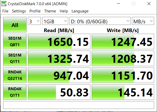Although not advertised, we tested this card for both sustained write performance and also monitored the temperature during this test. The highest temperature this card reached was 58°C and its sustained right performance was an incredible 1.17GB/s.