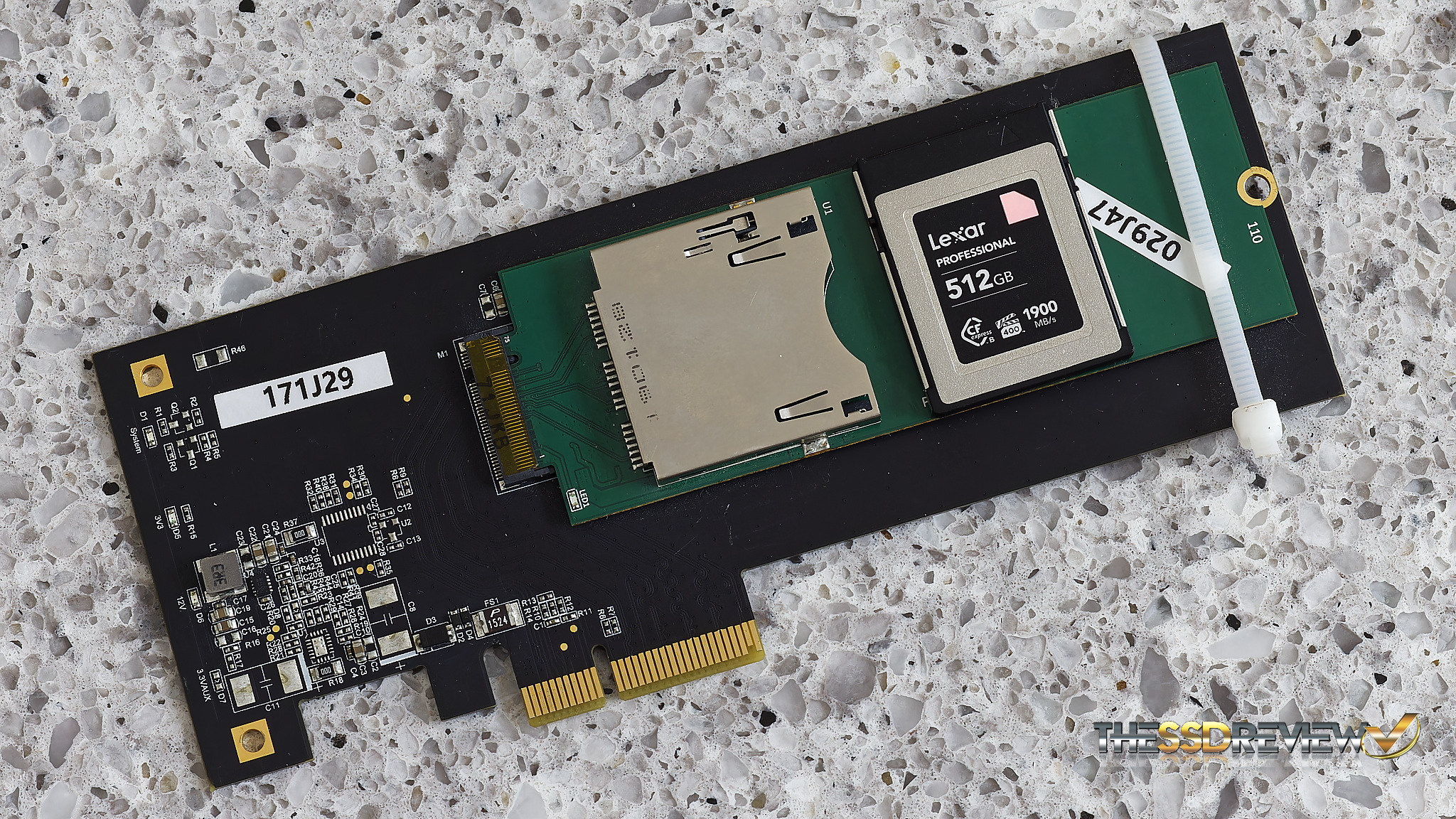 For our testing today, we will be relying on the pictured PCIe 3.0 x4 CFExpress reader created for us by Lexar some time ago. As a bit of confirmation, we always test with multiple readers we have on hand and of both the ThunderBolt 3 and the newer USB 3.2 2×2 spec. One of those readers is Lexar’s own CFExpress USB 3.2 2×2 Card Reader which is a 20Gbps device that allows data transfer speeds up to the industry standard and to a theoretical max of 2GB/s. It is available and found at Amazon for $77.99.