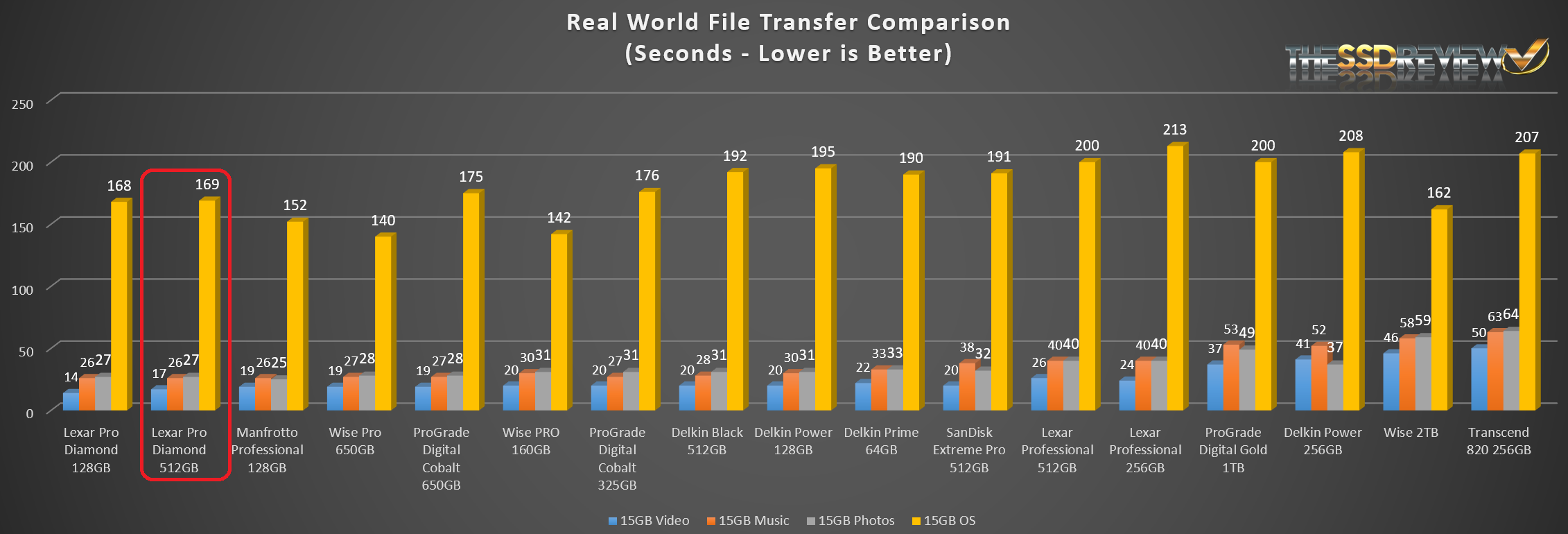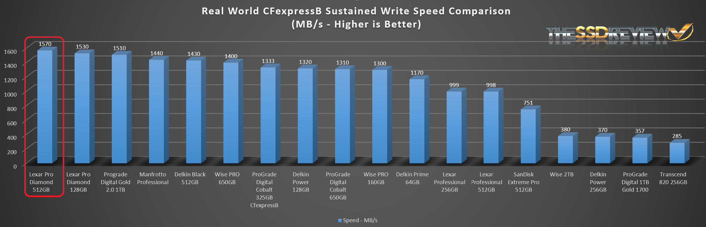 The Data Transfer speed of the Lexar Professional Diamond Series CFExpress Type B Memory Cards are the best we have seen to date and consistent with what we are seeing throughout our overall test regimen.