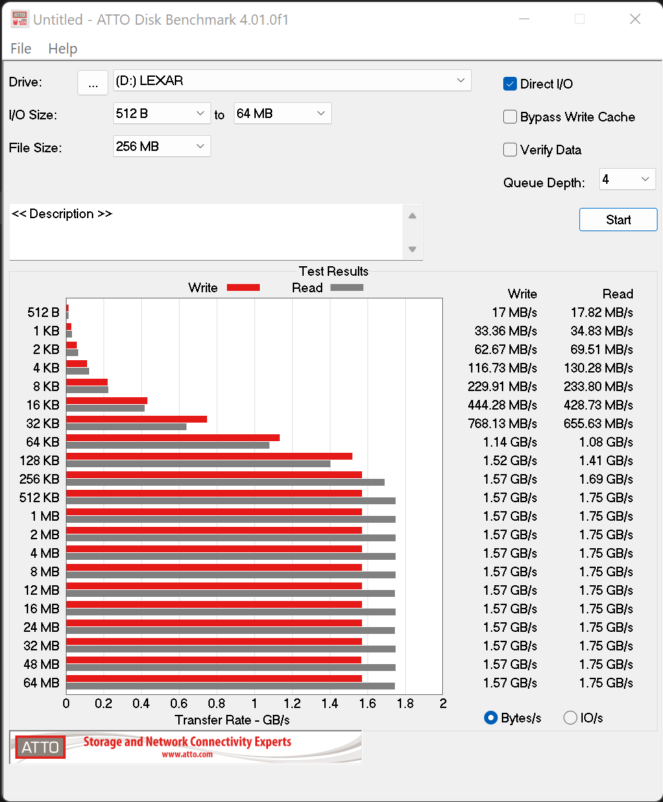 ATTO Disk Benchmark is perhaps one of the oldest benchmarks going and is definitely the main staple for manufacturer performance specifications. ATTO uses RAW or compressible data and, for our benchmarks, we use a set length of 256mb and test both the read and write performance of various transfer sizes ranging from 0.5 to 8192kb. Manufacturers prefer this method of testing as it deals with raw (compressible) data rather than random (includes incompressible data) which, although more realistic, results in lower performance results.