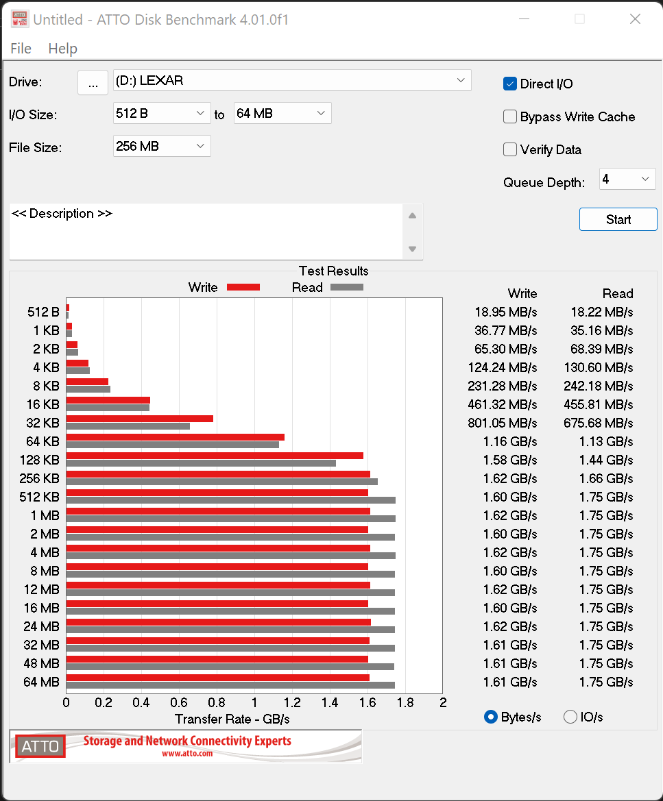 ATTO Disk Benchmark is perhaps one of the oldest benchmarks going and is definitely the main staple for manufacturer performance specifications. ATTO uses RAW or compressible data and, for our benchmarks, we use a set length of 256mb and test both the read and write performance of various transfer sizes ranging from 0.5 to 8192kb. Manufacturers prefer this method of testing as it deals with raw (compressible) data rather than random (includes incompressible data) which, although more realistic, results in lower performance results.