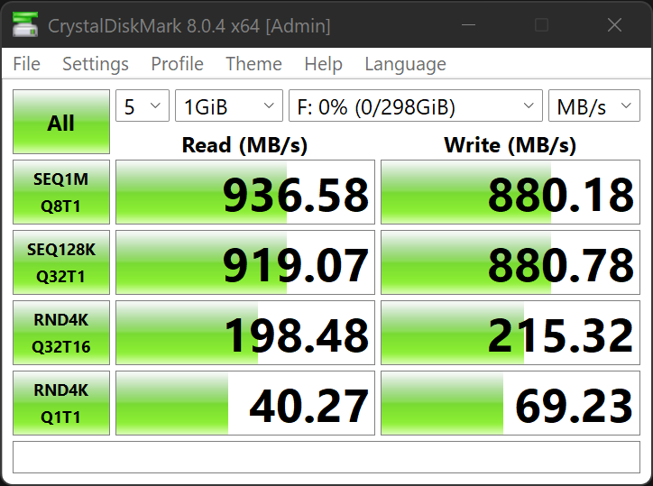 The AJA Video Systems Disk Test is relatively new to our testing and tests the transfer speed of video files with different resolutions and Codec.