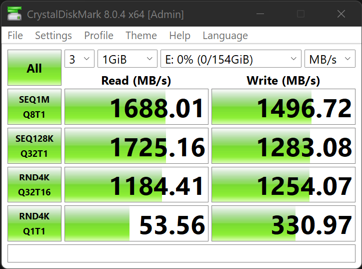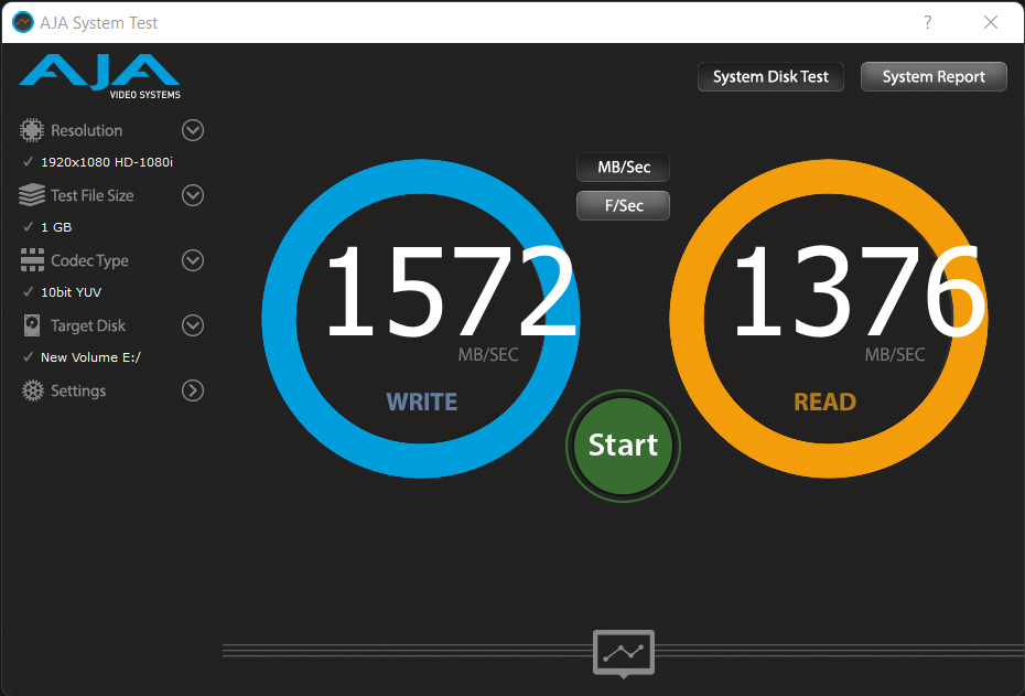 The AJA Video Systems Disk Test is relatively new to our testing and tests the transfer speed of video files with different resolutions and Codec.