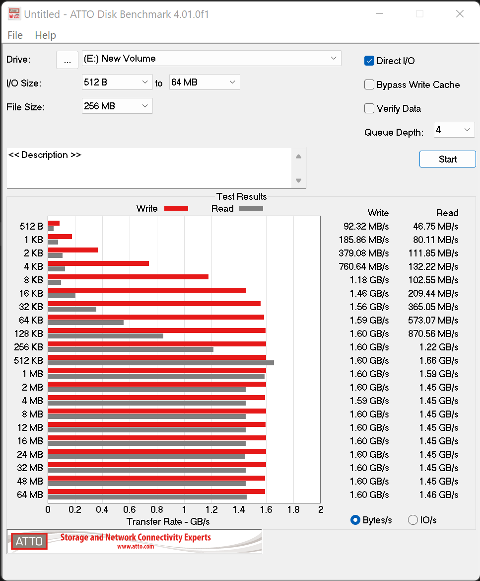 ATTO Disk Benchmark is perhaps one of the oldest benchmarks going and is definitely the main staple for manufacturer performance specifications. ATTO uses RAW or compressible data and, for our benchmarks, we use a set length of 256mb and test both the read and write performance of various transfer sizes ranging from 0.5 to 8192kb. Manufacturers prefer this method of testing as it deals with raw (compressible) data rather than random (includes incompressible data) which, although more realistic, results in lower performance results.