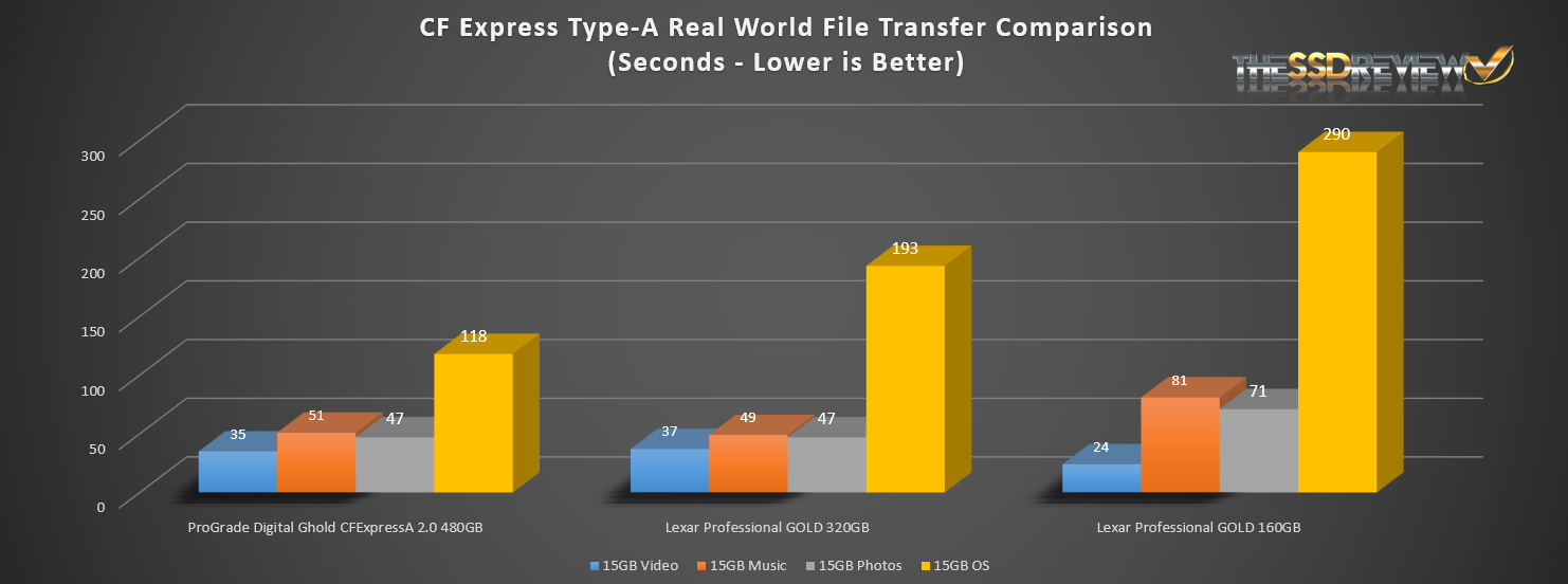 The PG Gold 4.0 placed first ahead of both the Lexar and previous Gen ProGrade Type A card.