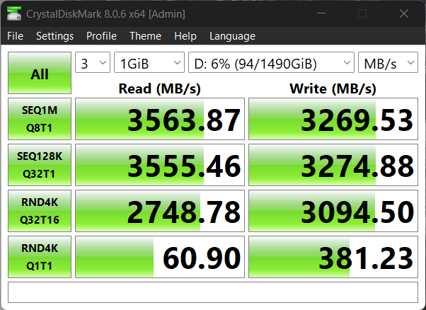We promised to also include a result using the ProGrade CFExpressB 4.0 Memory Card Reader and this last result demonstrates incredible performance, be it just a bit lower than the above result. Remember, this performance is USB 4.0/Thunderbolt 4/5 dependant.