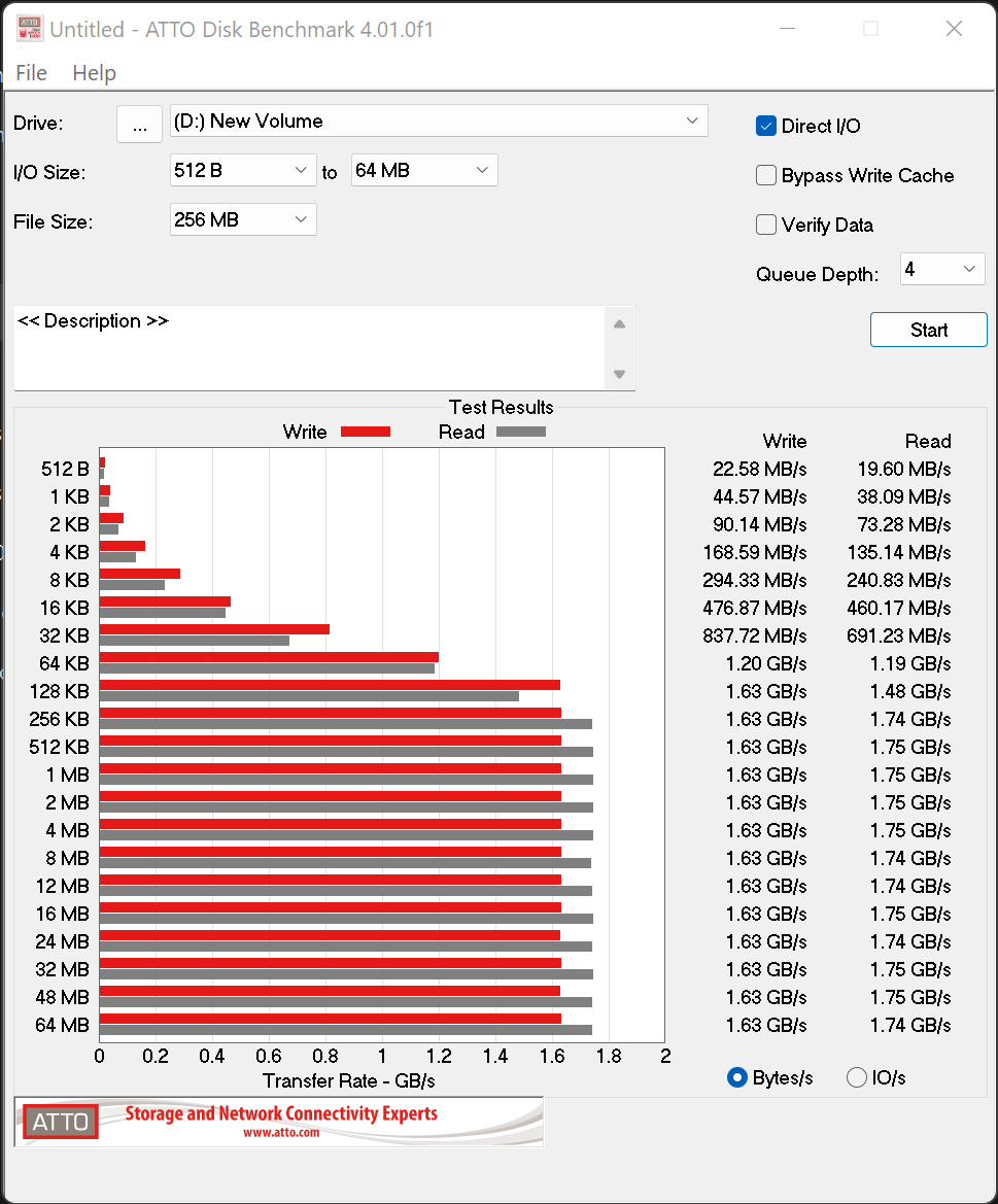 ATTO Disk Benchmark is perhaps one of the oldest benchmarks going and is definitely the main staple for manufacturer performance specifications. ATTO uses RAW or compressible data and, for our benchmarks, we use a set length of 256mb and test both the read and write performance of various transfer sizes ranging from 0.5 to 8192kb. Manufacturers prefer this method of testing as it deals with raw (compressible) data rather than random (includes incompressible data) which, although more realistic, results in lower performance results.