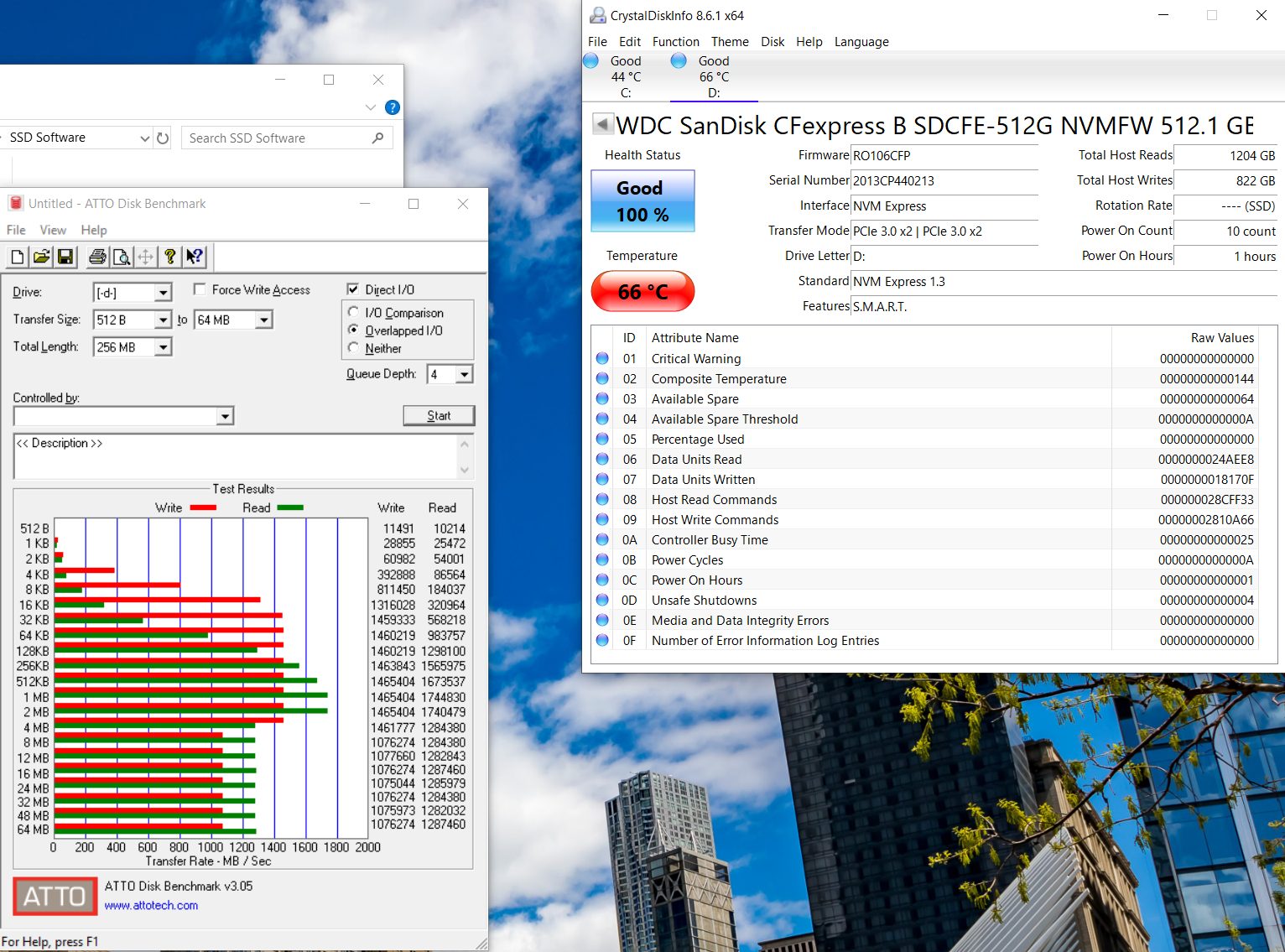 In testing the SanDisk Extreme Pro CFexpress B Card, we learned how temperature affects the cards performance. We saw this in our previous ATTO benchmark but wanted to look just a bit more closely so we conducted several tests again watching the temperature with Crystal Disk Info