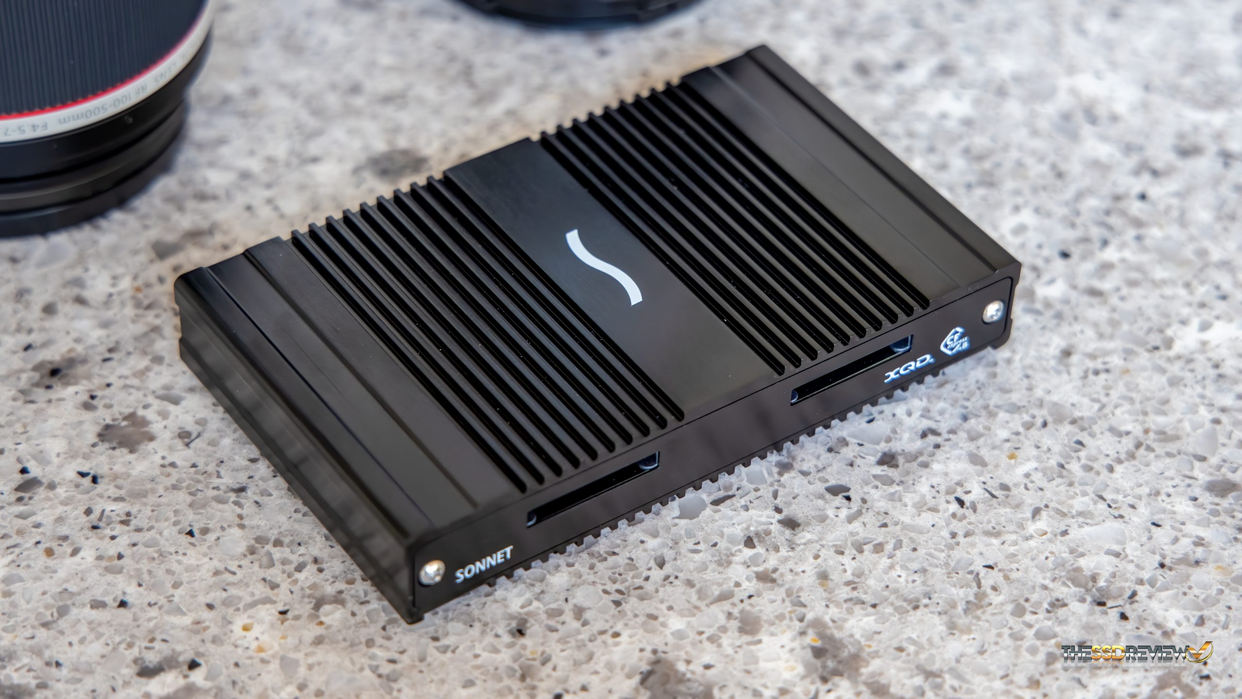 The Sonnet SF3 Series CFexpress B/XQD Pro Card Reader is one of the few on the market today that will allow you to use your CFexpress card to its full performance capabilities. Its build is beyond reproach with a smooth brushed aluminum exterior with ribbing that acts as a heatsink, two ports in the front that will accommodate CFexpress Type B or XQD cards, as well as two Type-C Tbt3 ports at the back to allow for daisy chaining as Thunderbolt 3 does.