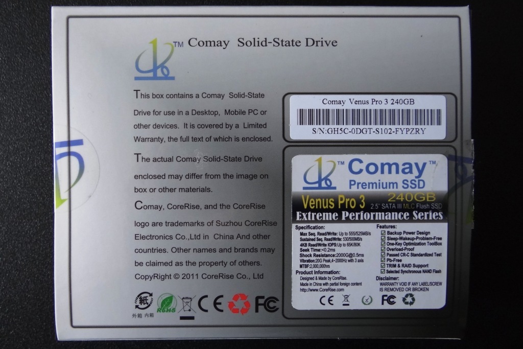 Comay is a brand of SSDs manufactured by CoreRise Electronics Ltd, one of three SSD companies located in China with the others being Renice and Runcore. The Comay line is a typical ‘SandForce Driven’ family with limited availability as the company is relatively new, however, Comay can be found in Canada, at Synetic Inc. Their website shows additional distributors in Russia and Australia.