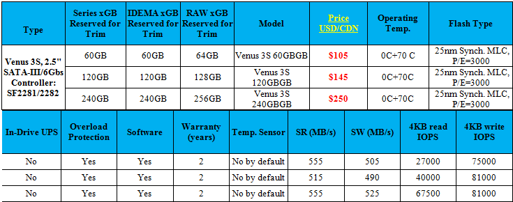The Comay Venus 3 SATA 3 SSD family is yet another of the long arm of ‘SandForce Driven’ SSDs and it’s performance is as we would expect it for a typical LSI SandForce controlled SSD. Realized performance above 500MB/s for both read and write and IOPS above 80,000 has become their trademark and, if the number of SSD companies that have become partners with LSI SandForce is any indication, LSI SandForce is a wise choice for a first entry into the SSD world.