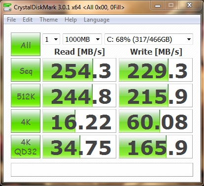 Again, slow 4K read speeds, but otherwise massive performance gains across the board versus what a normal hard-drive can churn out.