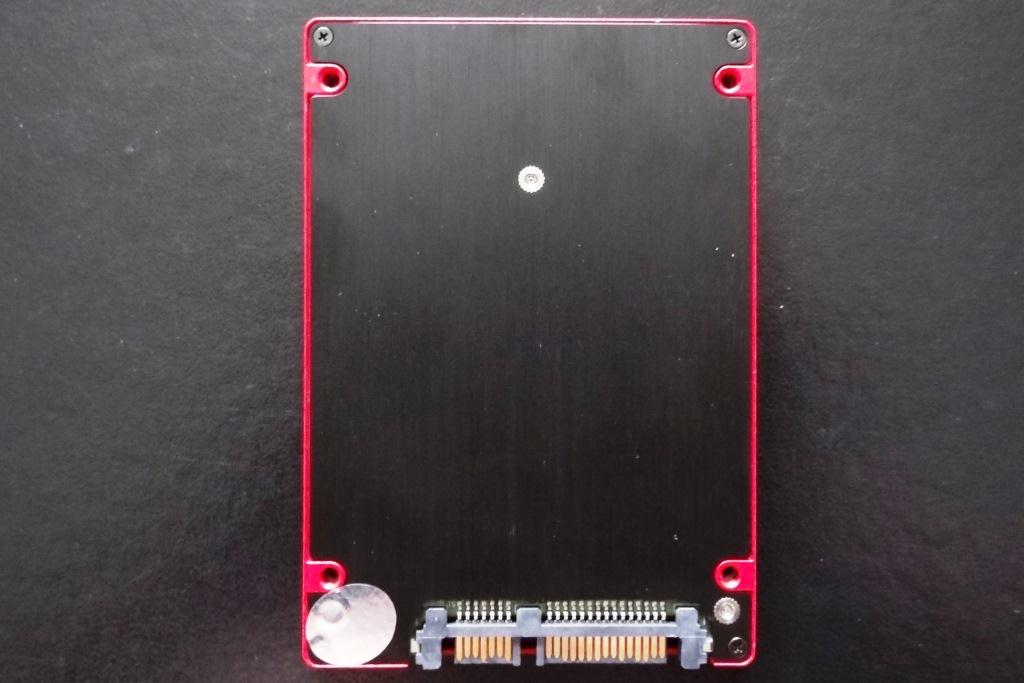 The case itself is two piece and a bit different than the typical SSD case we are used to seeing. The cover of the GT is a red aluminum cast while the base plate is black and held in place by four screws, one of which has the standard security tape to prevent tampering.